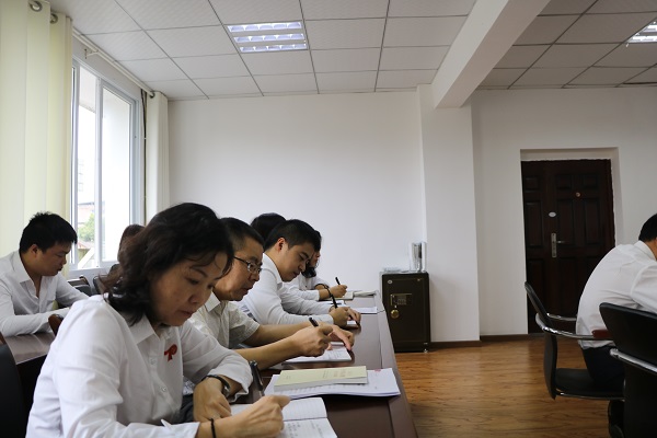 张书记带领大家回顾中国共产党的光辉历程,初心和使命。结合纪检监察工作实际,对纪检监察干部存在的一些问题进行分析,并号召支部全体党员在主题教育过程中找到自己的问题,通过检视反思,抓好整改落实工作,立志做“忠诚、干净、担当”的纪检监察干部。