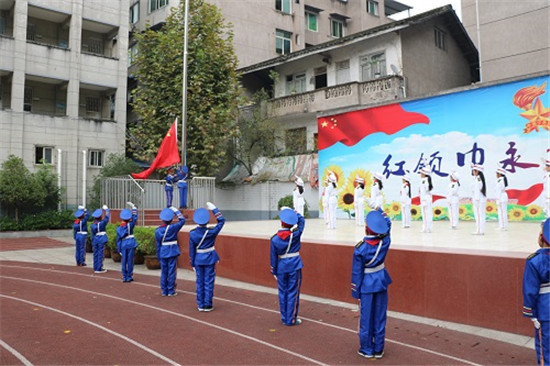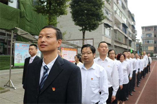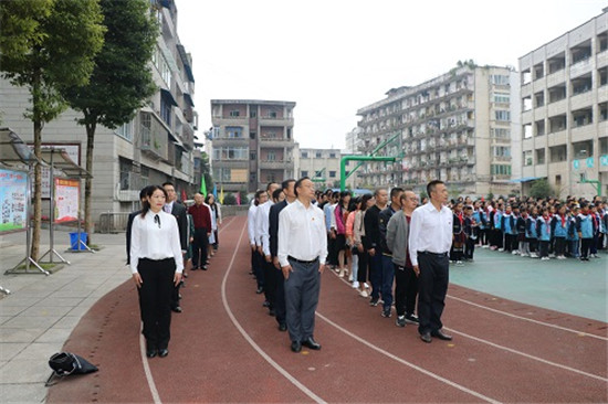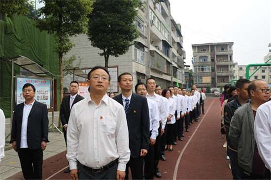 9月30日,荥经县纪委监委全体干部到严道镇第一小学参加“升国旗、唱国歌”主题活动。