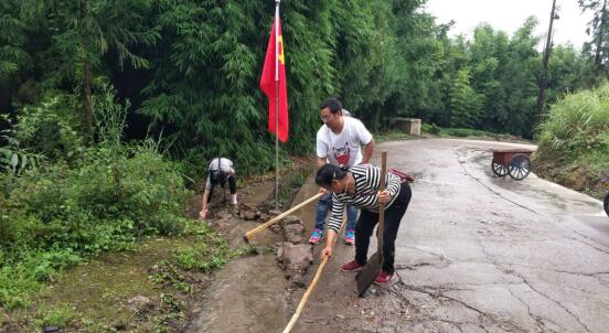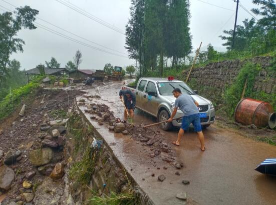 8月11日,上午新添镇纪委干部对辖区主要道路落石进行清理,保证抢险道路畅通。