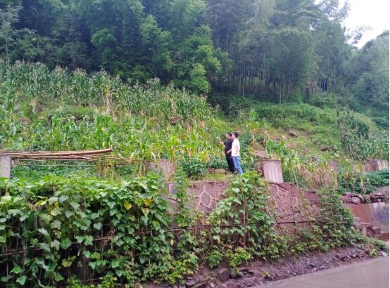8月11日,龙苍沟镇纪委对辖区内各地质灾后隐患点进行雨后排查。
