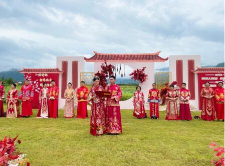 婚礼现场,一派喜庆,新人们身着华服,在一片喜庆祥和中先后进行了梳头礼、签婚书、共饮合欢酒、结发礼、执手礼等仪式,婚礼气氛十分浓重。“这场婚礼没有大操大办,但包含着真情实意。它彰显移风易俗新风尚,让我们的婚礼更加有意义。”刚结束完集体婚礼的一位新娘对这场婚礼很满意。新中式集体婚礼作为一种新式婚礼,与中国传统旧式婚礼相对而言,提倡节俭朴素风尚,倡导树立积极健康的婚姻价值观和婚庆消费观。